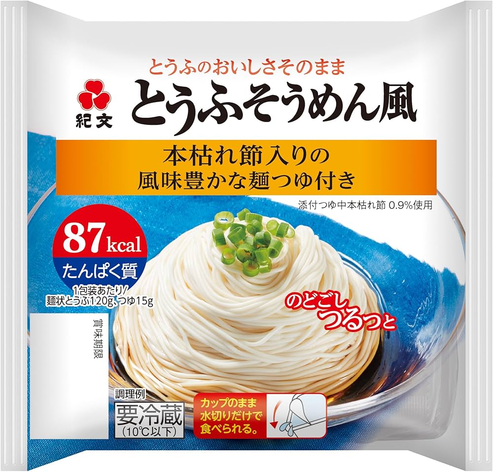 豆腐そうめんは豆腐や豆乳を原料にした麺状食品で、一般的な麺類よりカロリーや糖質を抑えやすい設計の商品が多いです。 例えば市販品では、麺状とうふ120gのみで67kcal、糖質4.7g、食塩相当量0.01gといった表示が見られます。 豆腐そうめんが体に悪いかどうかは食品そのものより、食事全体の組み立てと食べ方で決まるというのが結論です。