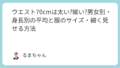 腹囲80センチの女性は、下腹がぽっこり出ている見た目ですが、服を着ている状態ではあまり太って見えません。40代までの女性では平均よりやや太めですが、50代以降では平均的なサイズになります。女性のメタボ基準は腹囲90センチ以上ですが、80センチ以上でも脂質異常症、高血圧、高血糖のリスクが3倍になるため、生活習慣の見直しが必要です。腹囲はおへその高さで測定し、ウエストはくびれ部分(おへその上約2cm)で測定するため、通常は腹囲の方が太くなります。服のサイズは、ウエスト換算で75から78cm程度のため、LLから3Lサイズが適しています。縦ラインを強調し、ウエストマークを活用することで細見え効果が得られ、フレアスカートやダークカラーのボトムスで体型カバーできます。腹囲80センチから細くするには、有酸素運動と筋トレを組み合わせ、毎日20から30分以上運動し、筋トレで基礎代謝を高めることが効果的です。食事では、糖質や脂質の摂取量をコントロールし、栄養バランスのとれた食事を1日3食食べることで、内臓脂肪を効率的に減らせます。